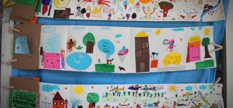 …E sotto a un telo colorato, tra confusione ed entusiasmo, anche gli studenti più piccoli hanno le idee molto chiare. Accade appena prima della chisura estiva, nella nuova scuola primaria di San Felice sul Panaro.